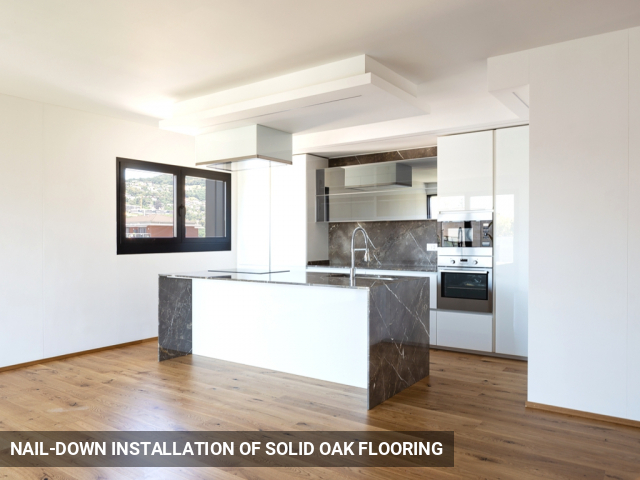 The installation went with initial refitting of the original boards, followed by a secret nail-down installation of the new solid oak flooring into the existing pine floorboards.